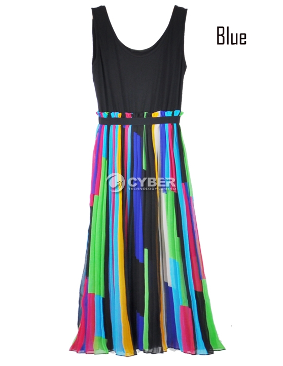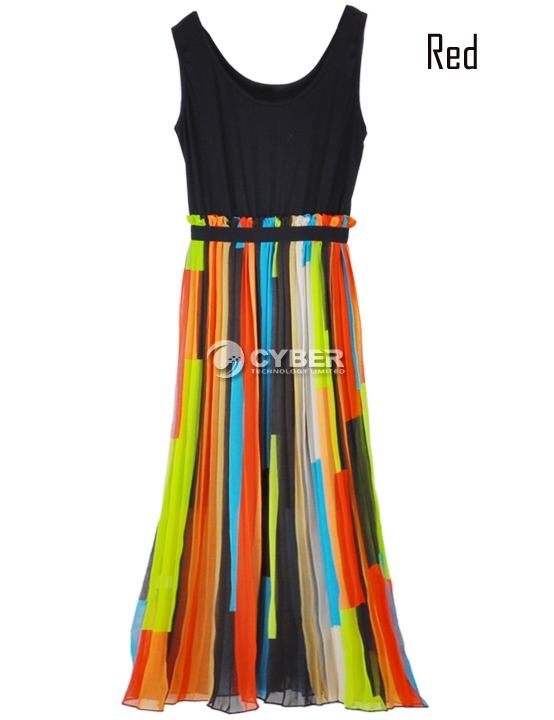 Sleeve Style: Sleeveless Size Type:Regular Material: Chiffon + Cotton blend Size (Women's): S/M/L Color: Red, Blue, Green Style: Maxi Pattern: Striped Occasion: Casual Dress Length: Full-Length Neckline: Crew Neck
