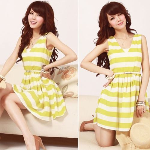 Sleeve Style: Sleeveless Size Type: Regular Material: Chiffon Size (Women's):S Pattern: Striped Occasion: Casual Style: Sundress Dress Length: Above Knee, Mini